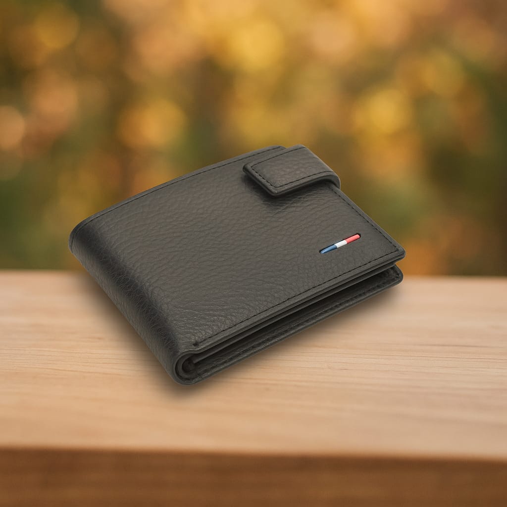 • Elegant Design: Sleek and minimalist, the wallet features subtle stitching and a classic logo embossed on the front.